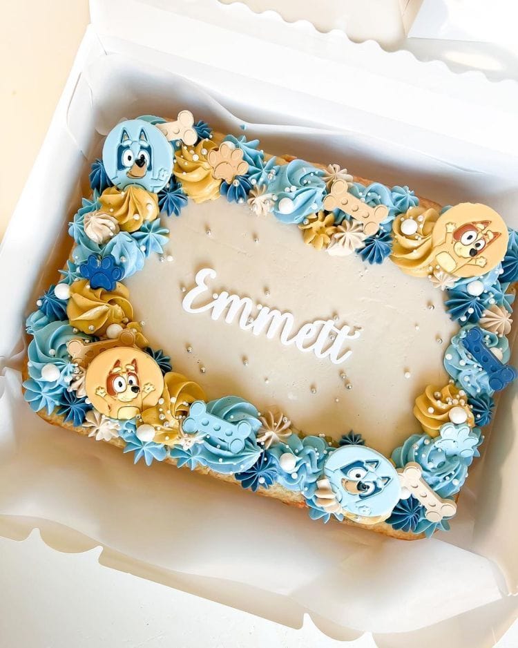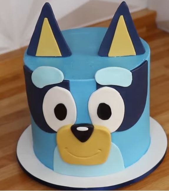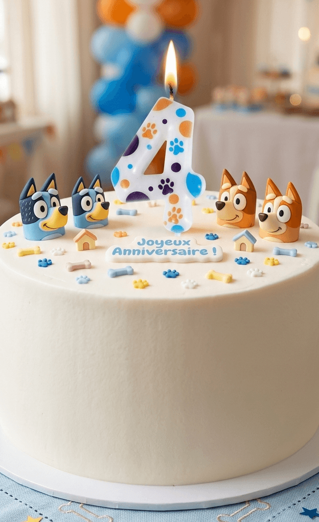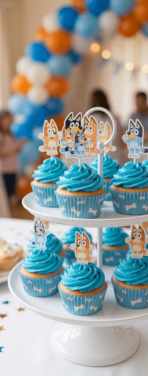 Cupcake avec glaçage bleu et topper bluey.